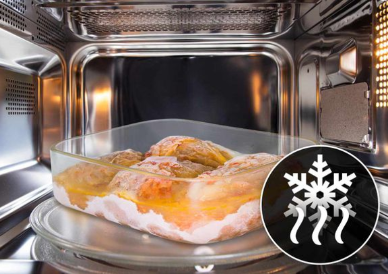 Кінець кипіння розморочених страв. Ви можете встановити програму розморожування на потрібну вагу або час, що гарантує ідеальне та лише бажане відтавання