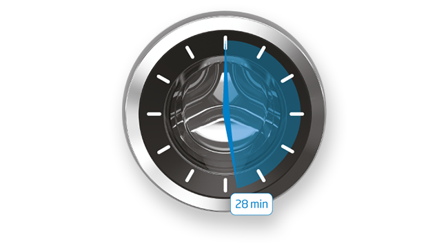 Якщо вам потрібно швидко мити свої найважливіші речі, виберіть швидку щоденну програму. Це дозволяє вимити повне завантаження барабана всього за 28 хвилин, на 30 градусів, пропонуючи швидке та ефективне промивання без компромісів.