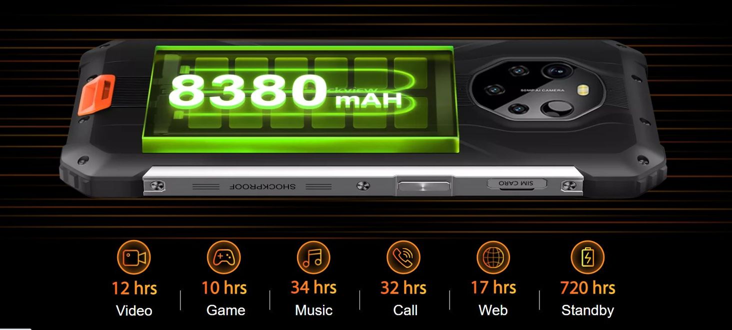 Величезний акумулятор також є однією з найбільших переваг BlackView BL8800 Pro. Ємність акумулятора становить до 8380 мАг, завдяки якому вона надає доступ до мультимедіа та контакту з усім світом довго. Він ідеально працює під час тривалих поїздок, коли неможливо постійно заряджати акумулятор. Однак функція швидкої зарядки дозволяє швидко доповнити потужність.