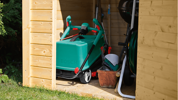 Танк для трави може вмістити максимум 40 літрів, а косарку легко зберігати.