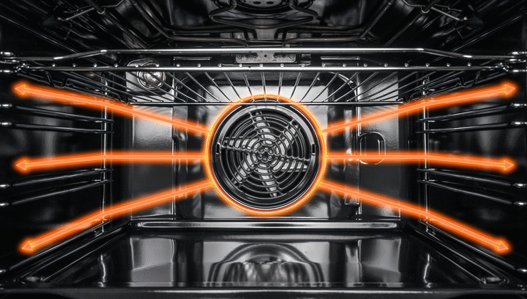 Спеціальний тип вентиляції всередині духовки: гаряче повітря постійно надувається на страві, завдяки якому оптимальна температура отримується швидше, а розподіл тепла всередині духовки є більш рівним. Це дійсно економить до 10 хвилин порівняно з класичною випічкою.