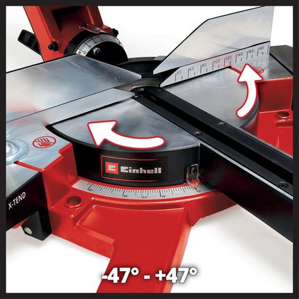 4 Розсувний шлем Einhell оснащений плавно робочою функцією подачі, що також дозволяє різати ширші елементи. Максимальна ширина різання - 340 мм, а глибина різання до 85 мм. Підтримки X-Tend можна регулювати однією рукою без використання інструментів. Фіксуючий власник забезпечує безпечну іммобілізацію заготовки.