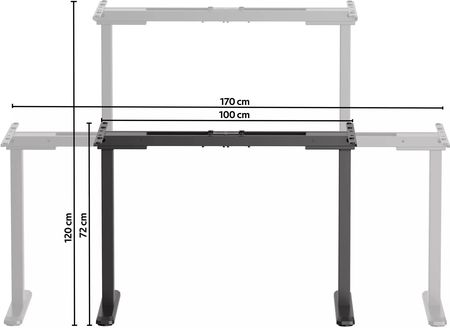 Діапазон коригування висоти: від 72 до 120 см шириною регулювання: від 100 до 170 см контролера з дисплеєм та пам'яттю налаштувань USB з навичками регулювання зарядного пристрою 10: 2,5 см/S2 тихих двигунів та вібраційного подушки, встановленого для кабелів з 6 -ти затискаючим прохакальним навантаженням: до 100 кг. Асамблея