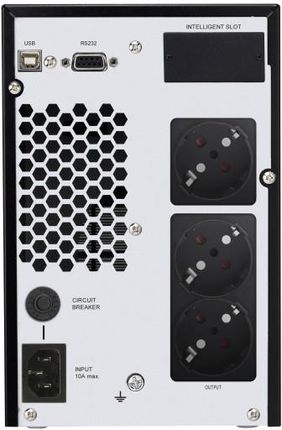 Подвійне конверсію джерела живлення (в Інтернеті) 1 KVA 900 Вт • Топологія UPS: Подвійна конверсія (в Інтернеті), Максимальна потужність конфігурації: 1 кВА, реальна потужність: 900 Вт • Тип порту USB: тип USB B, SCSI Інтерфейс: RS-232 • Ємність акумулятора: 9 AH, Акумулятор Напруга: 12 В Повне навантаження: 3,2 хв. Глибина продукту: 282 мм, висота продукту: 220 мм