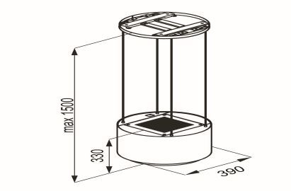 діаметр: 39 см Висота: 33 см Об'єм хв: 54 дБ