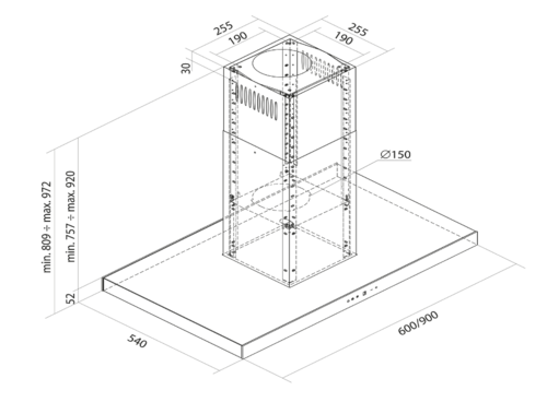 Lonatio Isola 90.2 Black - це рішення, присвячене прихильникам традиційних форм та функціональних рішень. Представлена кухонна витяжка характеризується мінімалістичним, геометричним дизайном.