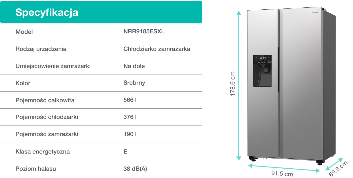 | Додаткове обладнання | Alarm otwartych drzwi, Oświetlenie LED, Multi Flow, Pełny NoFrost |