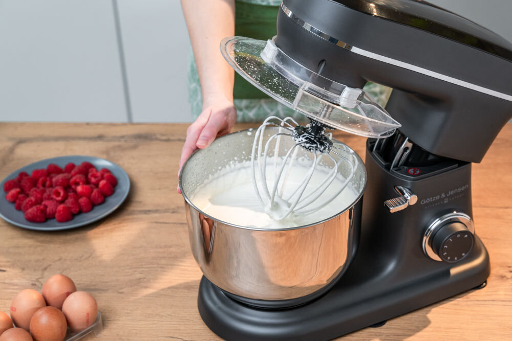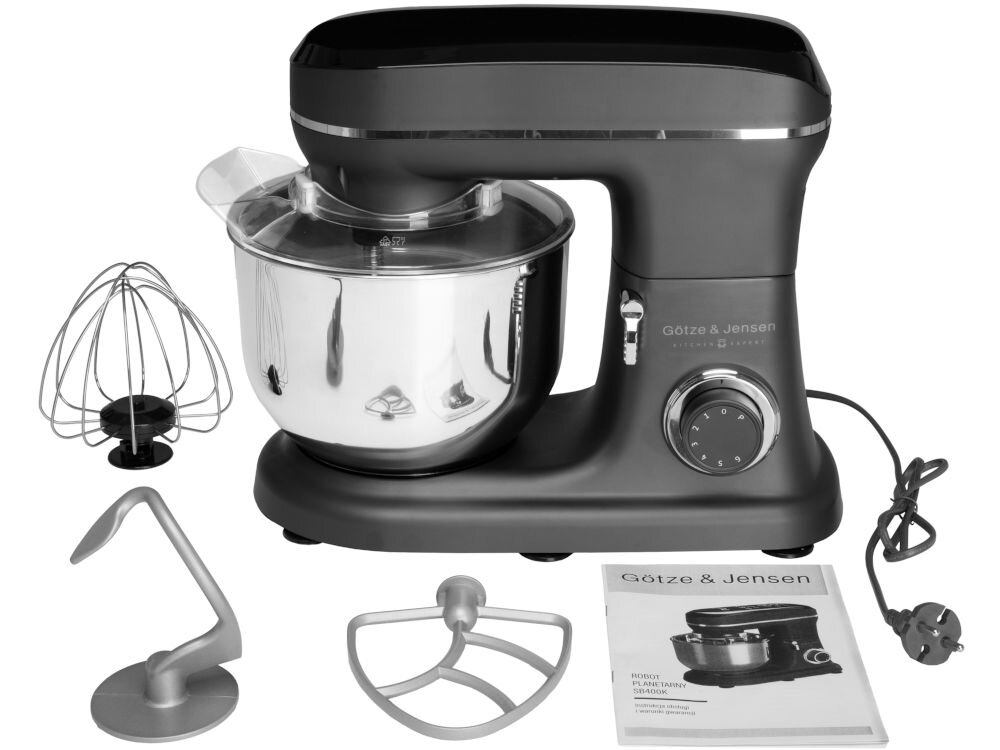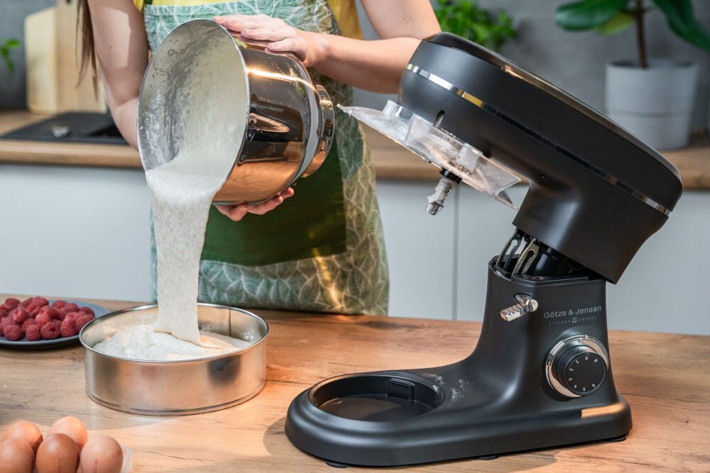 Robot Götze & Jensen SB400K оснащений потужним двигуном 1500 Вт, який може легко впоратися з щільними тортами, такими як дріжджі, хліб або пельмені.