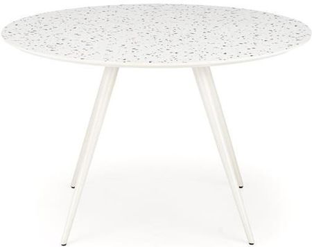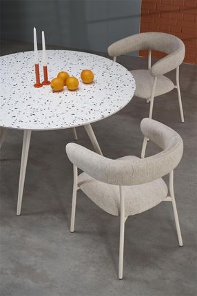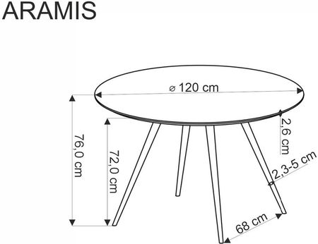 Aramis - це сучасний круглий стіл з діаметром стільниці 120 см. Цей середній стіл успішно "комфортно подасть" чотирьох людей. Рама виготовлена з твердих пластин HPL з шпоном з останнім кольором - в оригіналі - це будівельний матеріал, який створюється шляхом змішування цементу, води та різних видів агрегатів, таких як граніт, мармур або інші типи гірських порід. Розмір виглядає злегка, сучасним та зі смаком - вписується у вітальню, але також на їдальню чи кухню.