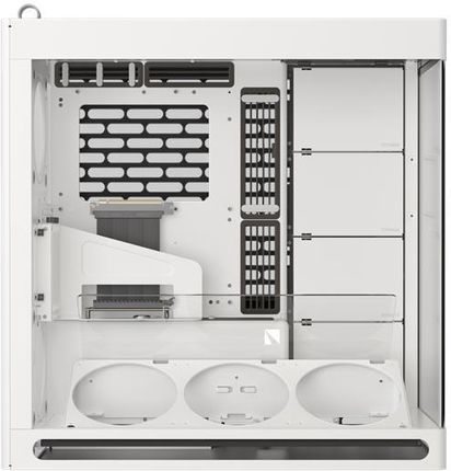 Виставковий корпус у білому, вертикальний GPU, набір з PCIE 5.0, з вигнутим загартованим склом, до 11 вентиляторів 140 мм, Опис цього продукту було перекладено автоматично. Обладнання: Оптимізоване охолодження GPU: Вертикальний набір охолодження GPU безпосередньо спрямовує графіку на графічну карту, забезпечуючи максимальну ефективність -ефективність роботи: Параметри для еластичного охолодження PCIE 5.0 та два 420 мм захисні графіки в центрі уваги: Центр управління кабельним кабелем: