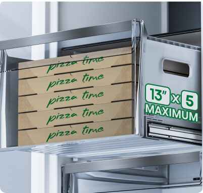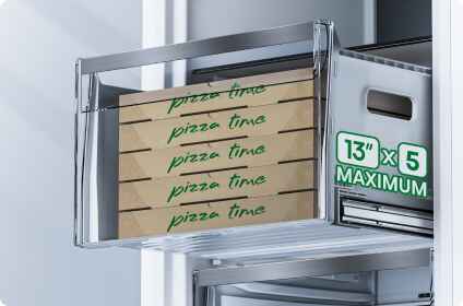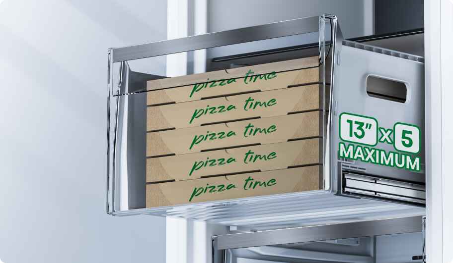 Два місткі ящики в морозилці пропонують оптимальне використання наявного простору та багато місця для зберігання більших продуктів, таких як піца, індичка або велика упаковка морозива. Металеві путівники гарантують, що обидва ящики плавно ковзають і без варення до 90% своєї довжини, гарантуючи легкий та швидкий доступ до збережених продуктів.