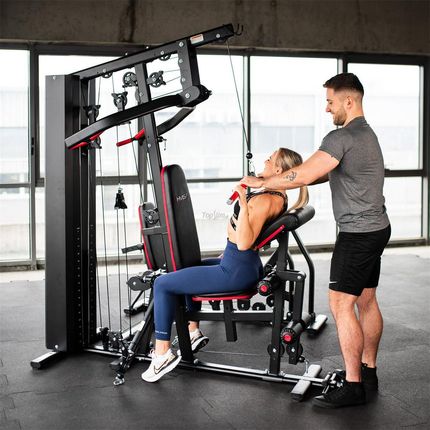 Атлас оснащений купою 80 кг, яку можна регулювати кожні 5 кг, що дозволяє точно відрегулювати навантаження на ваші потреби. Три підйомники - верхній, середній і нижній - дозволяють виконувати різні вправи, які ефективно включатимуть багато частин вашого тіла. Навчальний центр в одному пристрої Titan 17 має молитовну книгу, а також зброю для стискання на грудях з різними варіантами зчеплення, які також можна використовувати для тренувань на спині та плеча. Крім того, атлас оснащений руками для прольотів, які ідеально підходять для роботи над грудними м’язами, особливо використовуючи один -зацікавлені ручки, прикріплені до набору. Atlas також пропонує прес, щоб їх вичавити до ніг і машину для розширення коліна, завдяки якому користувач може ефективно тренувати нижні частини кузова.