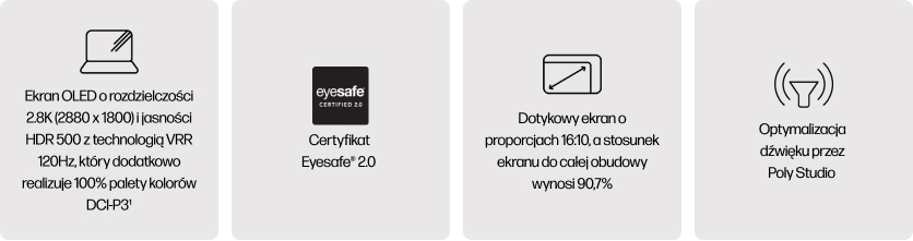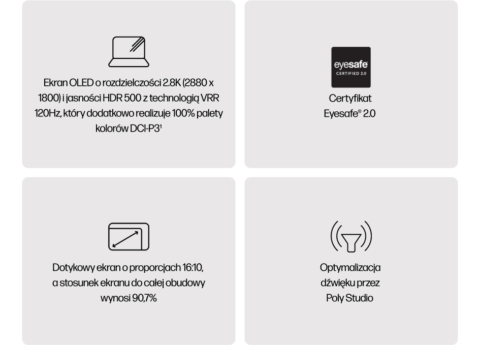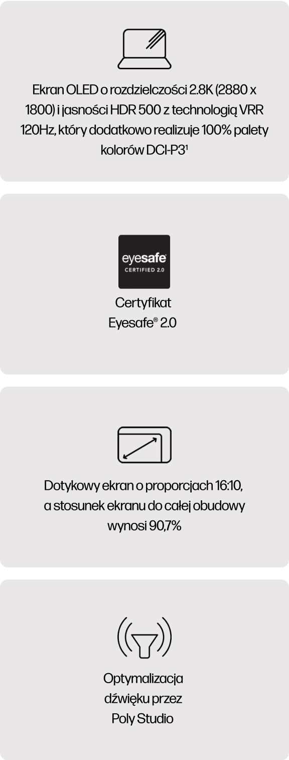 | Додаткова інформація | Matryca z pokryciem barw 100% DCI-P3 |
