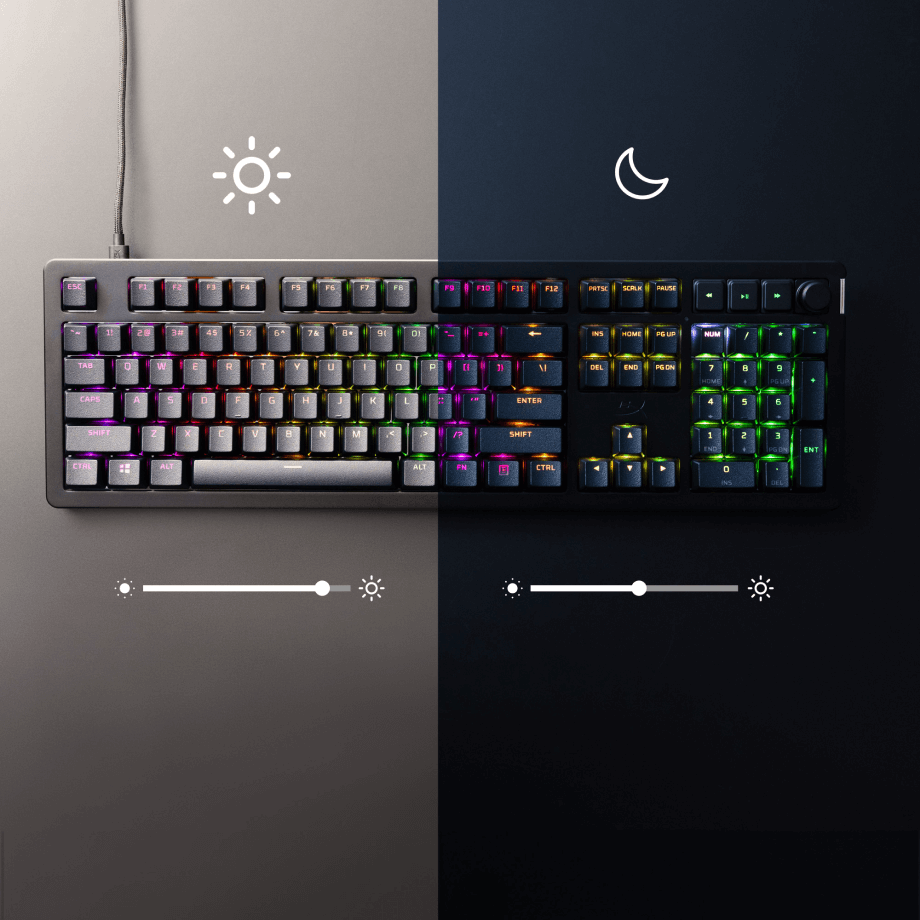 Shile Rise - перша в світі клавіатура для гравців, оснащених датчиком освітлення середовища, який динамічно регулює підсвічування RGB до умов освітлення навколишнього середовища. Просто відрегулюйте свій власний_x000D_ Уподобання в програмі NGGENUity, і вона готова!