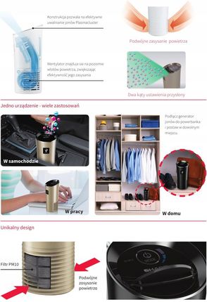 Портативний генератор іонів плазмкластера з пилом -фільтром PM10 - виключає забруднення та бактерії, що виникають у повітрі (наприклад, в машині, офіс, до кімнати дитини)