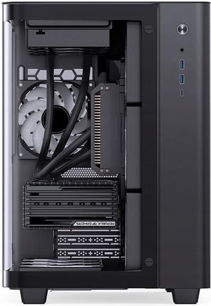Jonsbo TK-3: Чорна вежа MIDI з панорамним видовищем TK-3 встановлює ваше ігрове обладнання в центрі уваги. На перший погляд ви можете побачити, що не тільки сторона вежі виготовлена зі скла, але й значної частини передньої частини. Вигнуте загартоване скло дозволяє панорамний вид на внутрішню частину комп'ютера в діапазоні 270 °, тому ви можете добре представити своє обладнання.