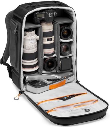 підходить до двох дзеркальних камер або SLR, включаючи один з об'єктивом до 300 мм, 5-6 додаткових лінз та менших аксесуарів. 32 х 16 х 46 см вага: 2,7 кг Максимальний захист Рюкзак Lowepro Pro Trekker BP 450 AW II відрізняється великим простором для фотографічного обладнання та інших аксесуарів. Липучки можна легко налаштувати для поточних потреб. Прекрасний і в той же час поглинаючи удари стін ідеально захищати камеру та лінзи під час активного руху з сумкою. Організований організатор ідеально підходить для зберігання кабелів, акумуляторів, зарядних батарей. Додані кишені в передній клапоті присвячені ноутбуку 15 ", планшет 10" та менших речах.
