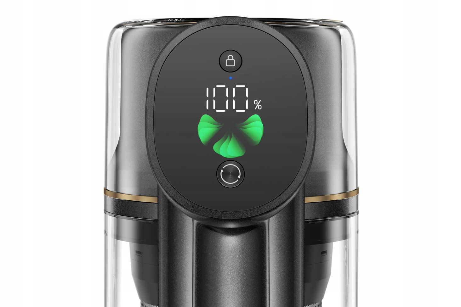 Світлодіодне дисплея відображає інформацію про рівень зарядки акумулятора та вибраного режиму роботи, а одного натискання кнопки достатньо, щоб вибрати автоматичний або турбо -режим. Робочий режим також може бути заблокований одним дотиком, що виключає необхідність продовжувати натискання кнопки.