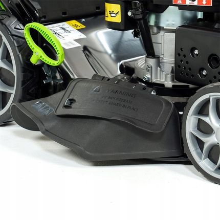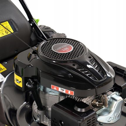 mocy двигун 196 см3 | Драйв | Великий кошик 75 л | Функція мульчуття 6-ступінчаста косина регулювання сталевого корпусу Система миття