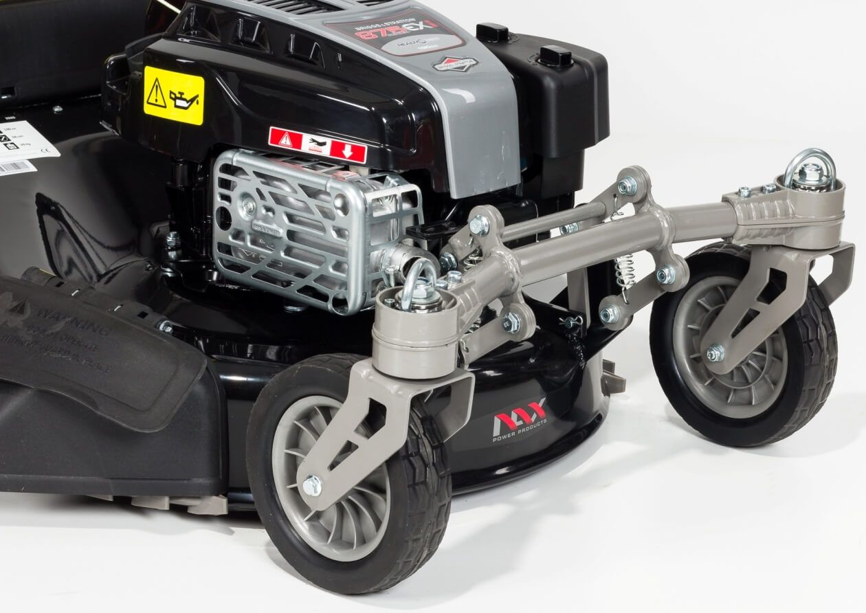 Косарка NAX 5000S має інноваційне рішення, що передбачає встановлення двох передніх круток, що полегшує запуск косарки між різними перешкодами.