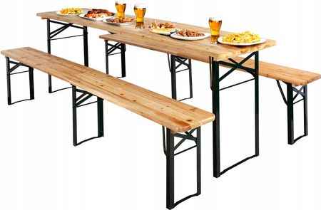 Набір: Таблиця + 2 посилені лавки Стільниця та сидіння, виготовлені з твердої ялини Рама, виготовлена з порошкової сталі Лавки, зміцнені додатковою середньою ногою Стійкість структури Можливість зібрати набір Висока міцність (максимальне навантаження на лавку - 300 кг, табл. 100 - кг)