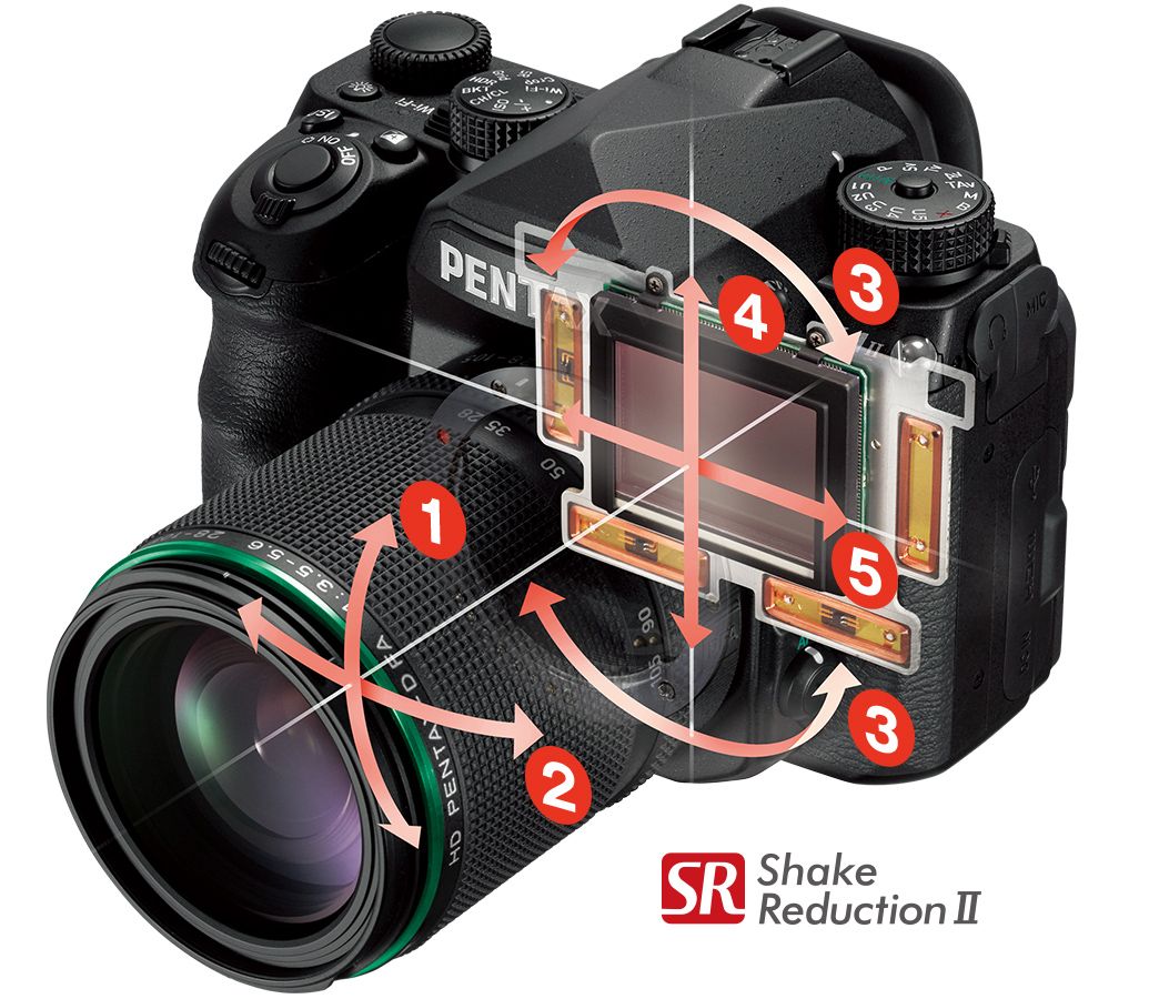 4 Нове покоління п’яти осі SR II (зменшення струму II) дозволяє більш ефективно мінімізувати ефект вібрації, спричинений нахилом камери (в основному стосується макрофотографії) та тих, які були створені під час пострілів і ефективніше, ніж коли стабілізація знаходиться в об'єктиві. 5-осі системи SR II компенсує вібрації при 5 етапах значення експозиції. Навіть коли ви робите панорамні фотографії, система автоматично виявляє положення камери та керує вібраціями, утвореними під час пострілів. * Під час фотографування в режимі перегляду живого механізм не компенсує коливання, спричинені горизонтальним та вертикальним зсувом.