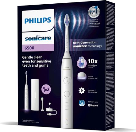 Пухаючи щітки Philips Sonicare 6500, навіть якщо у вас є чутливі зуби та ясна, а також має інноваційну технологію Sonicare, а також спеціальні чутливі налаштування та наша спеціально розроблена чутлива головка щітки. Ніжна технологія чищення: Philips Sonicare 6500 має інноваційну технологію для вищої чищення, навіть якщо у вас є чутливі зуби. Чутлива головка кисті S2 оснащена найм'якшою щетиною Sonicare для ніжної, але ретельної чищення, яка ефективно видаляє табличку-навіть у важкодоступних областях. Оптимальна головка білої кисті W2 зберігає зуби білими та чистими між очищеннями.