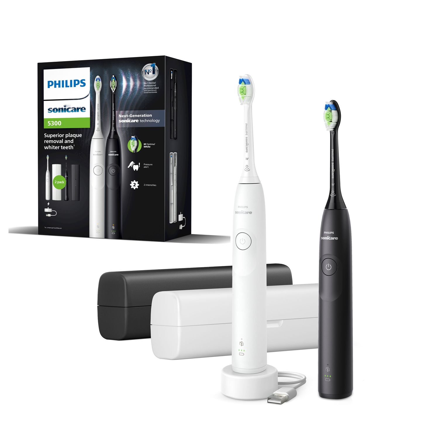 Нове покоління Sonicity від Philips Sonicare! Набір Sonic Brush Philips Sonicare 5300 оснащений звуковою технологією нового покоління, 2 інтенсивними рівнями та датчиком тиску, щоб запобігти чисткуванню занадто сильної.
