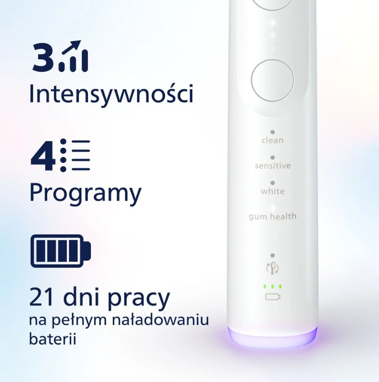 Насолоджуйтесь приємним чищенням та новим рівнем догляду за ротовою порожниною завдяки технології Sonicare нового покоління. Під час чищення, інноваційна магнітна система пензлика адаптує потужність пензля під час кожного сеансу очищення, забезпечуючи оптимальну продуктивність рівно 62 000 щетинок в хвилину, навіть у важких місцях. Тим часом, динамічний ефект рідини підтримує ефективність очищення головки пензля, обережно промиваючи по лінії ясен і між кожним зубом, допомагаючи досягти повного очищення кожного разу, коли ви чистите зуби.