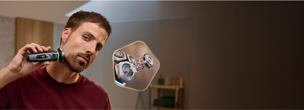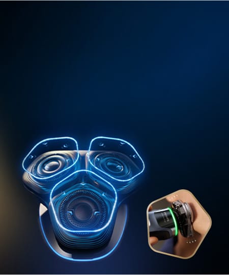 Повністю гнучкі та менші, компактні голови з візерунками, обережно підтягуючи шкіру, динамічно адаптуючись до кожної кривизни обличчя. Вони забезпечують постійний контакт зі шкірою і на 20% більше точності1, щоб зловити важке волосся на шиї і під диханням. Точність де завгодно.