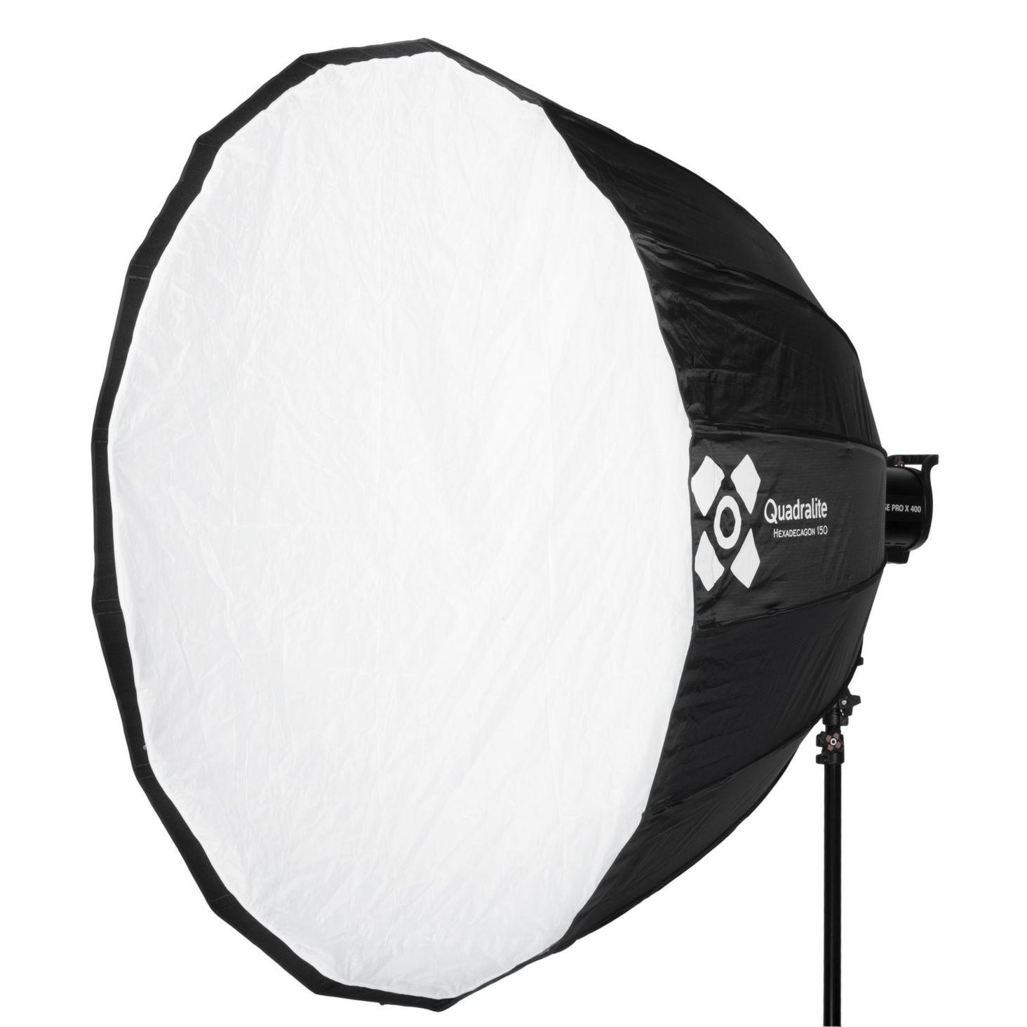 параболічний Нагадує тюльпан, дуже глибока миска цієї софтбокси є однією з її важливих особливостей. Ця форма означає, що користувач може дуже точно контролювати, де падає світло. Якщо є потреба, Hexadecagon також можна використовувати з сотком (доступний окремо).