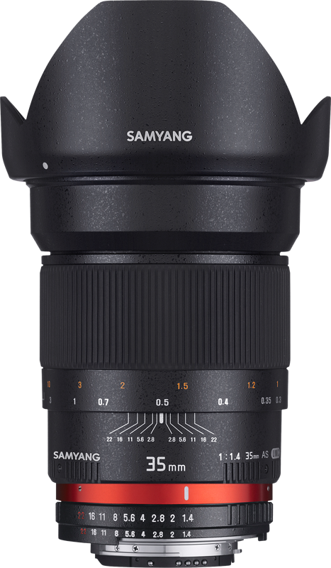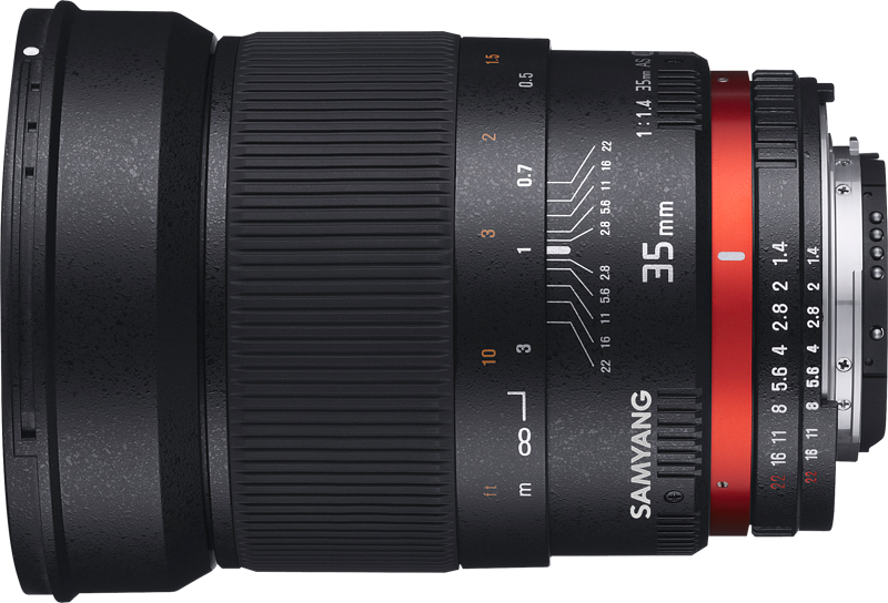 Samyang 35 мм f/1.4, як UMC, швидко є широким кутовим об'єктивом з ручним фокусом, адаптованим до найпопулярніших моделей цифрових дзеркальних дзеркал та беззеркальних пристроїв (24x36 мм).