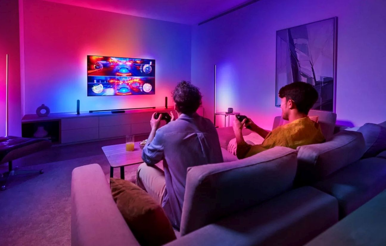 Використовуйте додаток Hue, щоб поєднати своє освітлення та отримати найкращу синхронізацію світла в кімнаті. Створюючи зону розваг, ви можете влаштувати віртуальну версію своєї кімнати та синхронізувати до 10 відтінків, відповідно до ваших уподобань.
