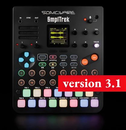 smpltrek пропонує широкі функції секвенування завдяки 10 різних шляхах, які можуть діяти як петлі зразки, окремі зразки, барабани або інструменти MIDI. Можливість додавання барабанів та чотирьох інструментів до чотирьох шляхів та 3 додаткових глобальних аудіо -шляхів до універсального інструменту для створення багато -шлейфних пісень. Функції копіювання сцен та встановлення їх послідовностей полегшують створення динамічних композицій, а експортувати пісні на окремі шляхи "стебла" дозволяють подальше редагувати в