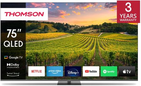 Thomson LCD 75 "QLED 4K/75QG5C14 Насолоджуйтесь улюбленими розвагами в приголомшливому 4K UHD -якості з вашим Thomson Google TV 75 "QLED. Працюючи від квантових нанокристалів DOT, дисплей QLED забезпечує збалансовану яскравість, вражаючі контракти та розширений кольорний діапазон. У поєднанні з роздільною здатністю 4K Ultra HD ви можете зафіксувати кожну деталь і зануритися у кришталево чисті зображення. Технологія Dolby Vision підвищує яскравість у кожній сцені, забезпечуючи точне відтворення кольорів для реалістичних зображень. Насолоджуйтесь динамічним аудіо з Dolby Atmos для зануреного телевізійного досвіду.