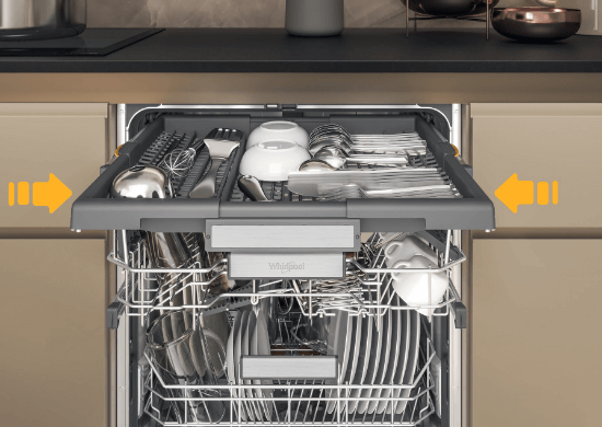 У посудомийній машині Whirlpool ви підійдете до всіх страв, навіть незвичайних розмірів. Мобільні та складні елементи дозволяють налаштувати інтер’єр до навантаження.